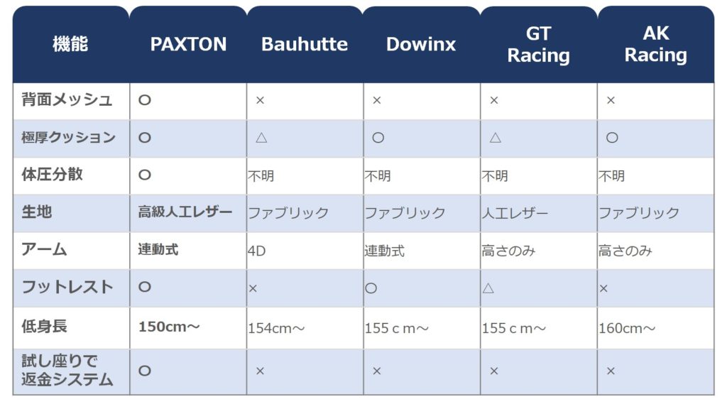 しかもPAXTON、座り心地が悪ければ全額返金という驚くべきシステムも導入しています。試して返金できるなんて、ゲーミングチェアの会社で初めて見ました。間違いなく自信があるからできるのでしょう、2022年注目度No.1のゲーミングチェアです。